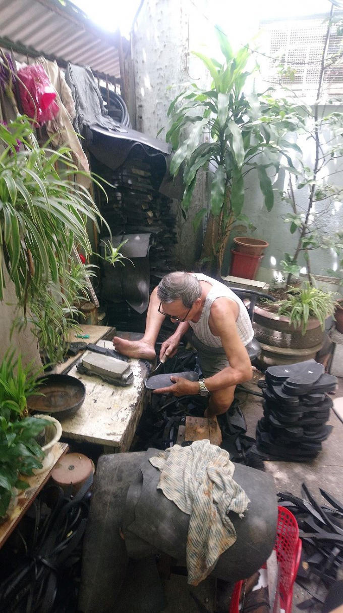“Nghề làm dép cao su của nhà tôi đã gần 100 năm, tôi vẫn nối tiếp việc của ông cụ tôi vì nó là cái nghiệp gia đình. Hơn nữa, nhu cầu đi dép cao su vẫn còn, nhất là người trẻ, họ thích đi dép cao su như là “mốt”, ngoài ra dép còn bán được cho khách du lịch”, ông Xuân bộc bạch.