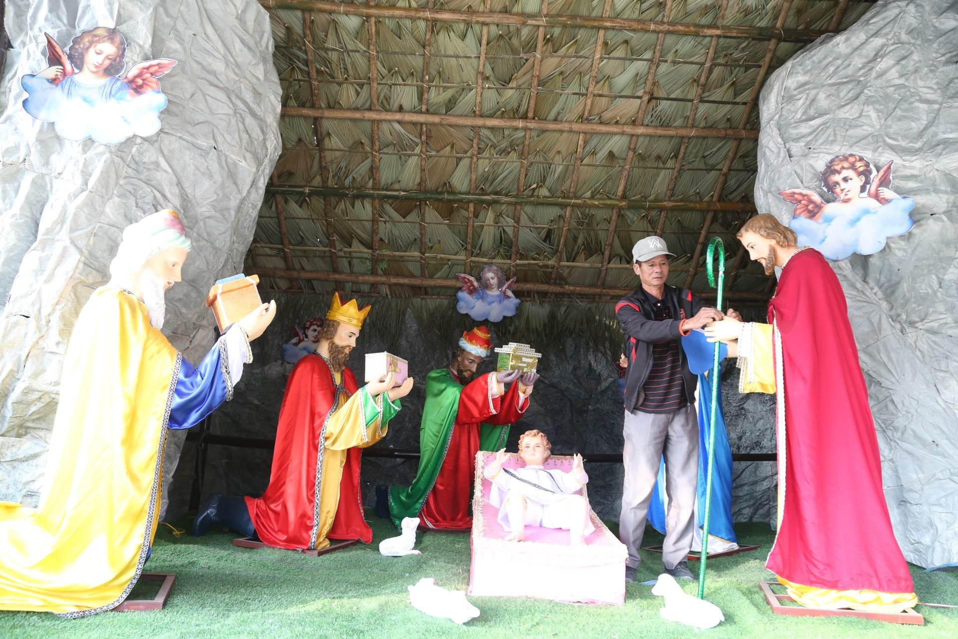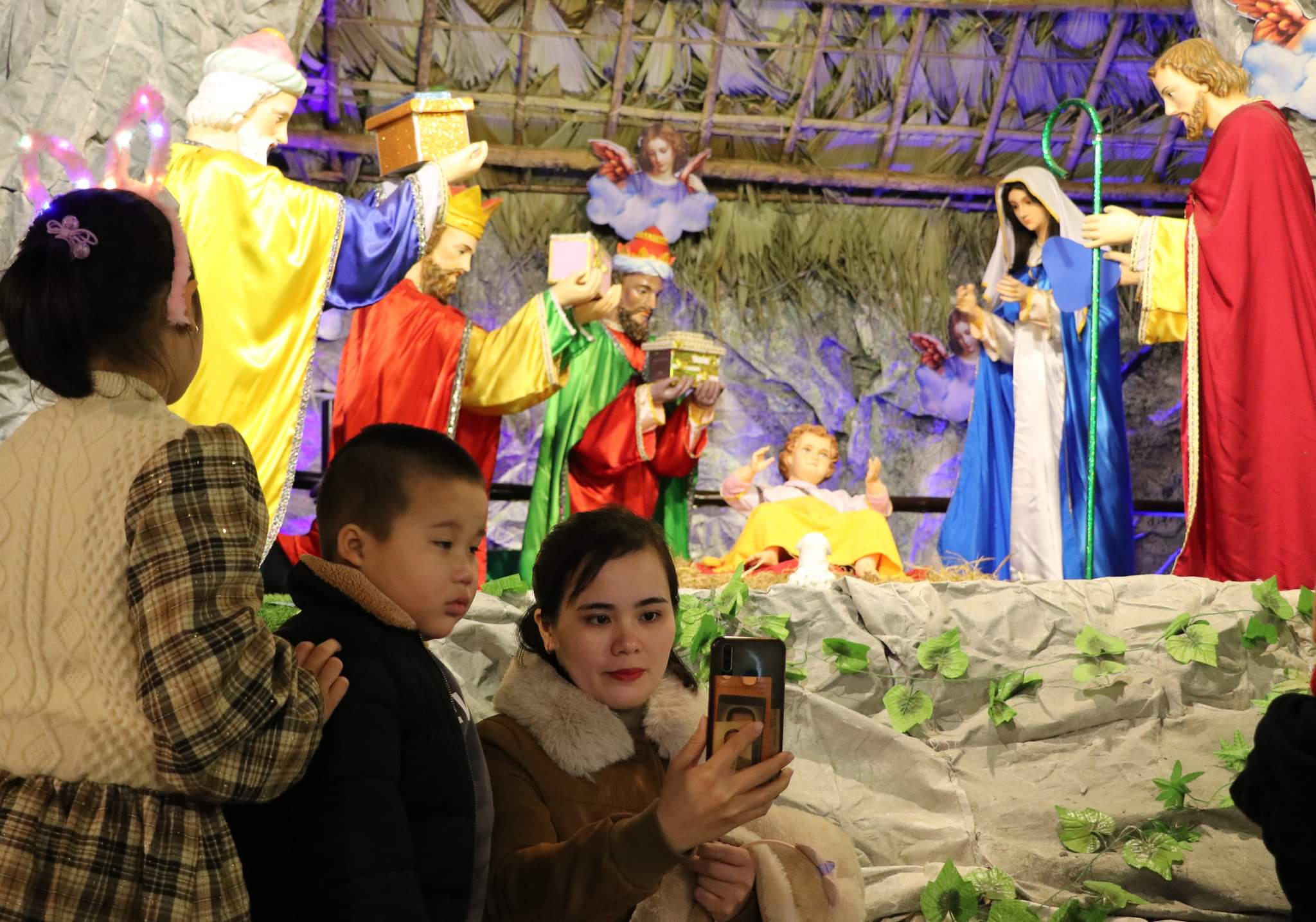 Điểm nhấn của Giáo xứ Kẻ Gai năm nay chính là hang đá Bê - Lem. Dù không "khủng" như những năm trước, song cách bài trí mới lạ, sống động khiến đây là công trình được người dân không kể đồng bào lương giáo háo hức tham quan, chụp ảnh.