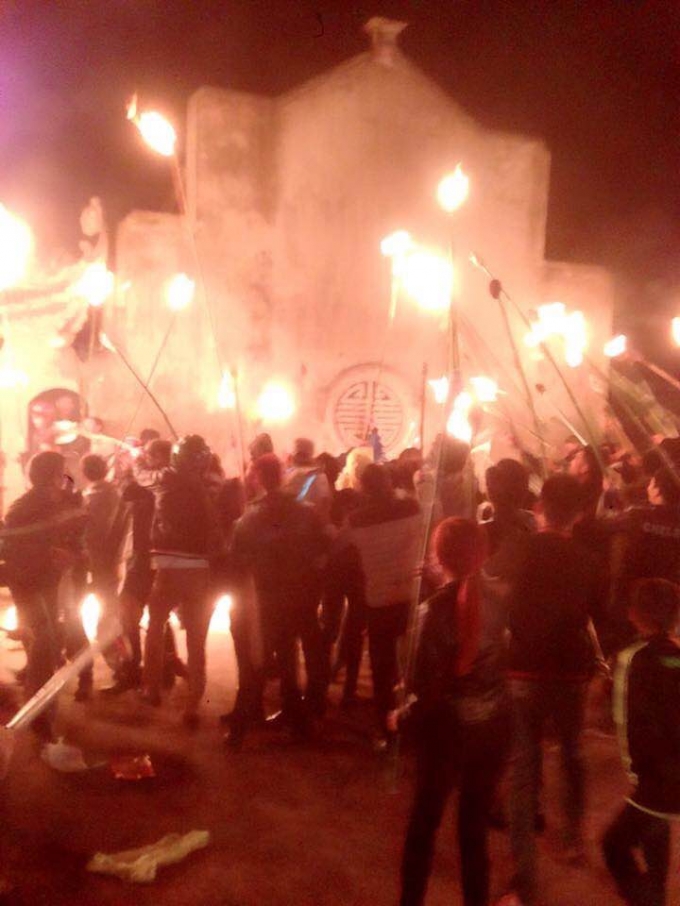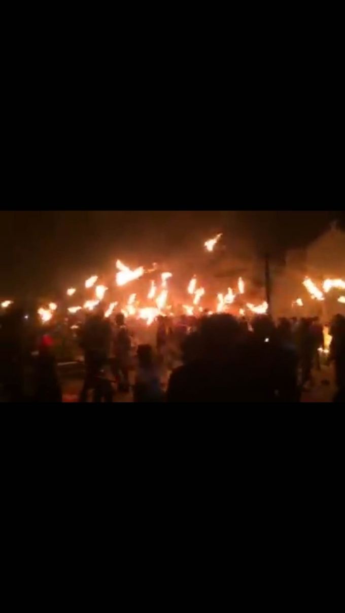 Từ đó lửa bắt đầu bùng lên, mọi người chen nhau chĩa đầu của cây tre đã tẩm dầu vào để tranh lửa sau đó giơ cao ngọn đuốc cùng nhau hô hào rồi toả ra khắp các nẻo đường để về nhà.