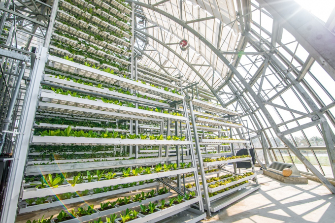 Khu nhà kính Dome với quy trình vận hành khép kín, mật độ canh tác cao gấp từ 3 đến 4 lần so với hình thức canh tác truyền thống, tạo lên tầng tầng lớp lớp xanh mát ấn tượng.