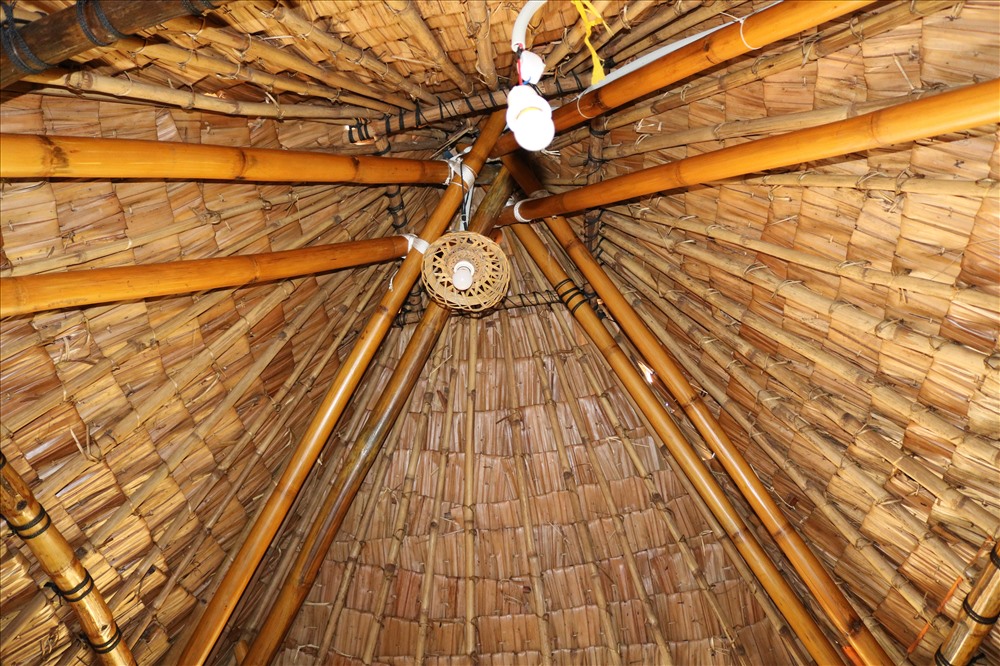 Nhà tre được thiết kế theo hình kim tự tháp. Ảnh: Lan NgôNhà tre theo kiểu nhà rông. Ảnh: Lan Ngô