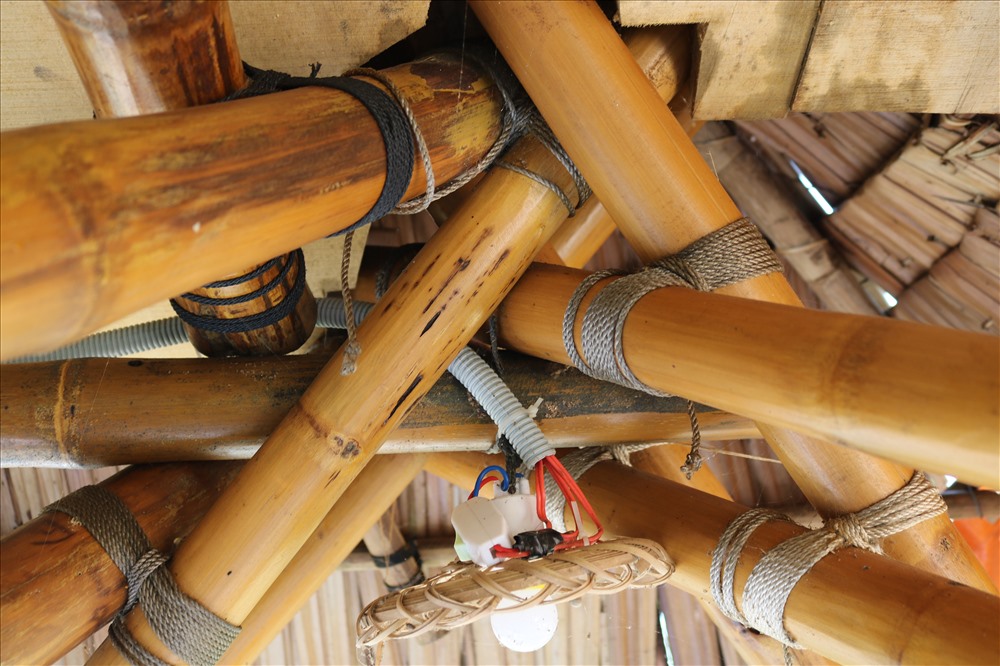 Mái nhà được lợp bằng lá, chân nhà được nâng đỡ bằng những cây tre lâu năm tạo độ chắc chắn cho ngôi nhà. Điều đặc biệt là toàn bộ cây tre được kết nối với nhau hoàn toàn bằng những nút dây rất kỳ công, không sử dụng bất kì một cây đinh, vít nào.