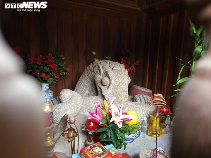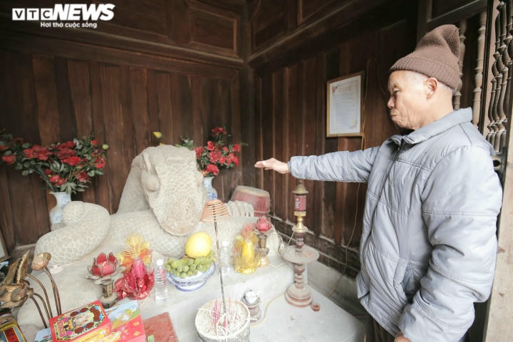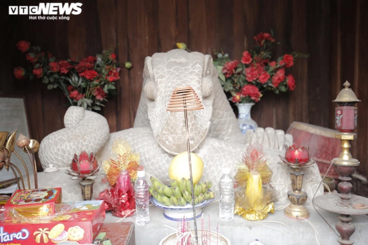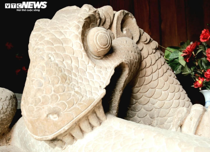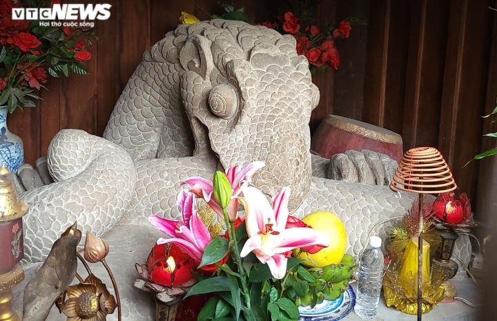 Ông Nguyễn Đình A, Thủ từ đền thờ Lê Văn Thịnh chia sẻ tượng mang hình dáng nửa mình rắn, nửa mang tư thế và móng vuốt như rồng.