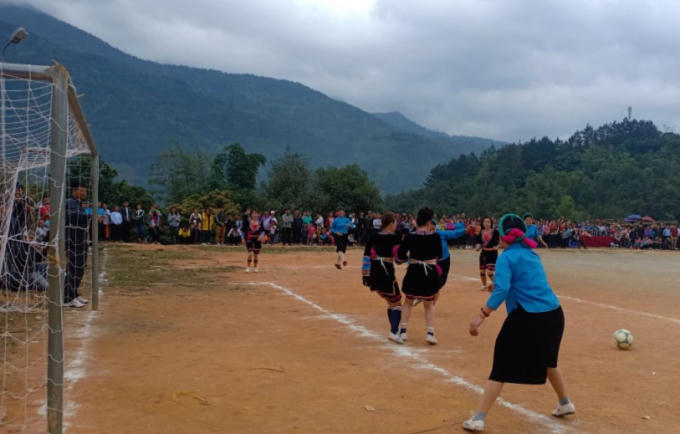 Năm nay, thi đấu giao hữu với các nữ cầu thủ Sán Chỉ xã Húc Động là đội bóng đá nữ dân tộc Dao xã Hải Sơn (TP Móng Cái).