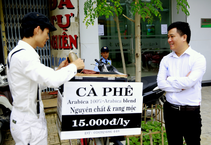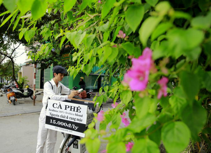 Thời tiết sau mưa thật biết chiều lòng người, êm ái và nhẹ nhàng đến lạ. Thảnh thơi giữa phố phường, tôi bắt gặp Quyết, một thanh niên bán cà phê rong.