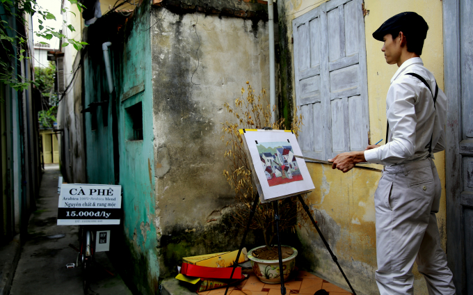 Ở một thành phố của tỉnh lẻ như Thanh Hóa, sự xuất hiện của chàng trai bán cà phê dạo quả là rất độc và lạ, ít nhất là với tôi. “Lần đầu tiên tôi uống cà phê dạo theo kiểu... vừa đi vừa pha” – tôi vừa cười vừa nói với Quyết. Vị thơm mộc đặc trưng, thêm chút lành lạnh của đá pha cùng vị thoang thoảng của sữa đã tạo ra một dư vị thật khó quên. Trò chuyện với Quyết tôi mới hiểu, cà phê nguyên chất và rang mộc hiện đang là đam mê của anh – một đam mê có thể là nhất thời để nuôi dưỡng một đam mê khác đã ăn vào máu của Quyết: Hội họa.