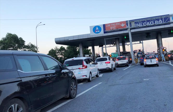 Xe xếp hàng dài chờ qua làn thu phí ETC tại trạm Cao Bồ, thuộc cao tốc Ninh Bình – Hà Nội