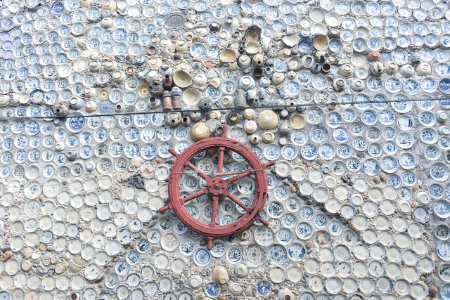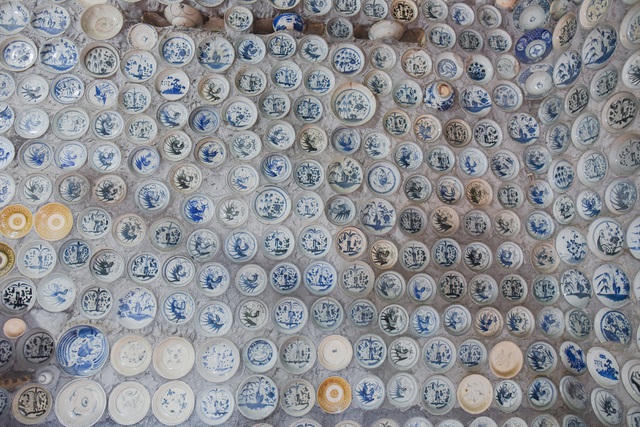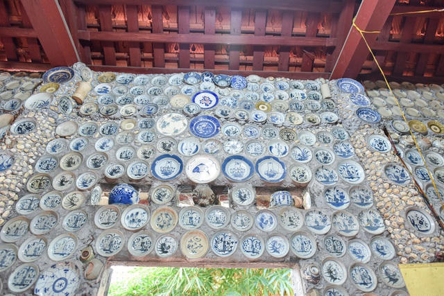 Theo ông Trường gắn bát đĩa lên tường, cổng, non bộ... là cách để ông gìn giữ và bảo vệ những cổ vật mà cha ông để lại và đây cũng là cách ông chơi đồ cổ.