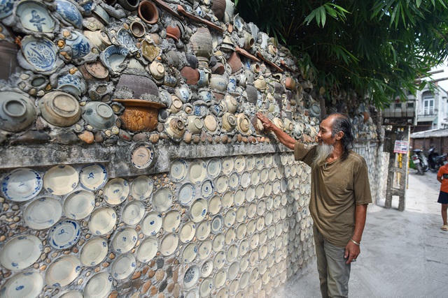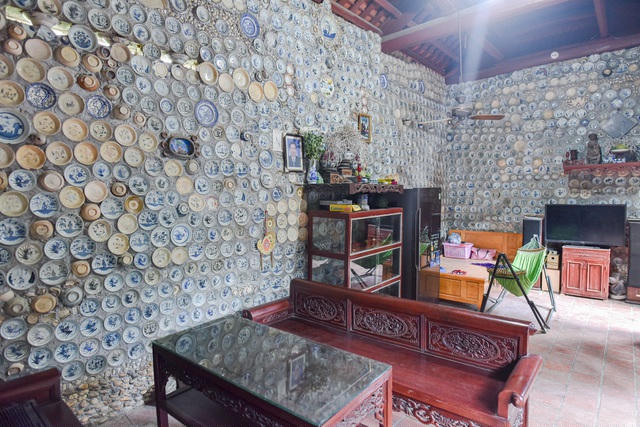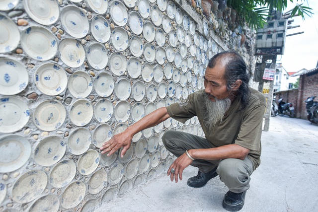 Vì nhà chật không có chỗ để nên ông Nguyễn Văn Trường (Vĩnh Tường, Vĩnh Phúc), một người đam mê đồ cổ, đã gắn hơn 10.000 bát, đĩa cổ, tiền cổ… lên tường nhà.