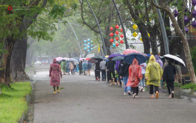 Mặ dù mưa lớn, nhưng du khách vẫn rất thích thú tham quan kinh thành. Ảnh: Minh Hòa