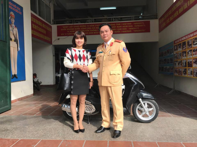 Qua xác minh, đại úy Cường đã tìm ra chủ nhân chiếc xe là Chị Nguyễn Thị Hương (SN 1992, trú tại Bo Non, Hương Vỹ, Yên Thế, Bắc Giang) và đã liên hệ với chị. Chị Hương cho biết chiếc xe của mình bị mất cắp do sơ ý vào ngày 9/12/2017 tại địa bàn phường Trung Hoà, quận Cầu Giấy, TP Hà Nội.