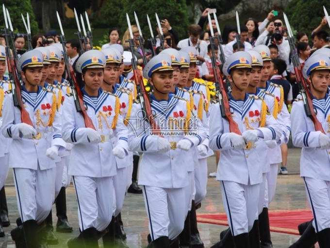 Hình ảnh đội danh dự Quân đội nhân dân VN trong lễ đón chính thức Tổng thống Obama sáng nay ở Phủ Chủ tịch.