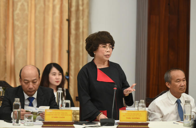 Bà Thái Hương, Chủ tịch TH True Milk mong muốn Chính phủ tạo ra một thể chế minh bạch, sáng suốt, làm bệ đỡ cho các DN phát triển. Ảnh: VGP/Quang Hiếu