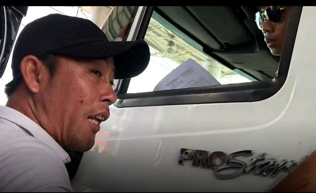 | Một người lạ mặt "đe" tài xế tại trạm BOT Cai Lậy. (Ảnh: báo Người lao động) |