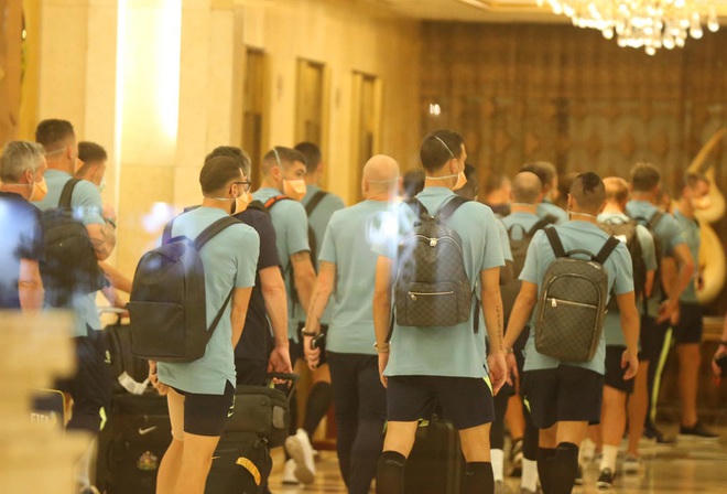 Chuyến bay chở đội tuyển Australia từ Doha (Qatar) hạ cánh xuống sân bay Nội Bài (Hà Nội) khoảng 20h tối nay. Các thành viên đội tuyển Australia được tiến hành lấy mẫu xét nghiệm Covid-19 ở sân bay, trước khi nhập cảnh Việt Nam và lên xe bus di chuyển về khách sạn ở trung tâm Hà Nội, gần ngay sát sân Mỹ Đình.