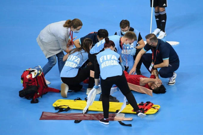 Ở hiệp đấu này, Đức Tùng dính chấn thương sau pha chạm với đối phương và phải rời sân trong nước mắt.
