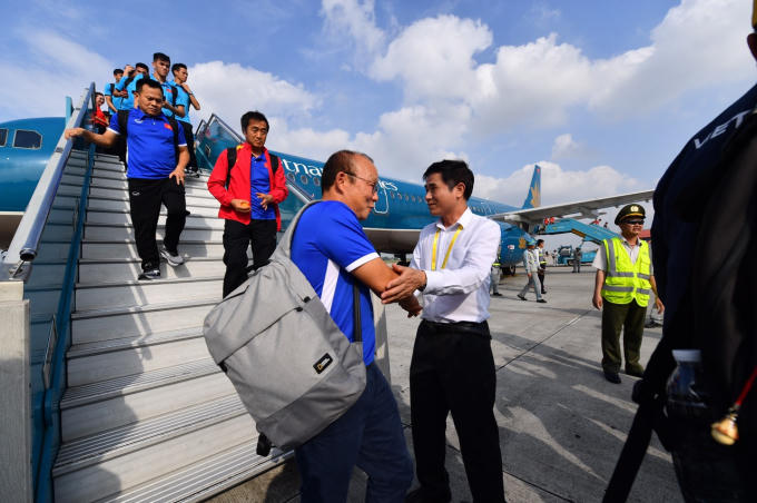 14h15 chiều nay (3/12), chuyến bay mang số hiệu VN9662 của Vietnam Airlines từ Bacolod (Philippines) đã đưa đội tuyển quốc gia Việt Nam và cổ động viên hạ cánh xuống sân bay quốc tế Nội Bài (Hà Nội).