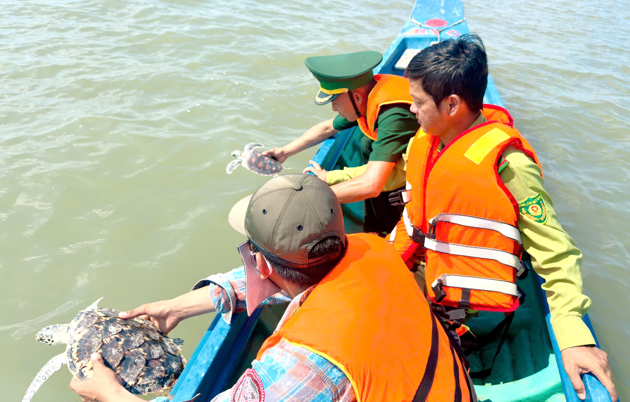 Đồn Biên phòng Tam Giang Tây thả các cá thể rùa biển quý hiếm về môi trường tự nhiên