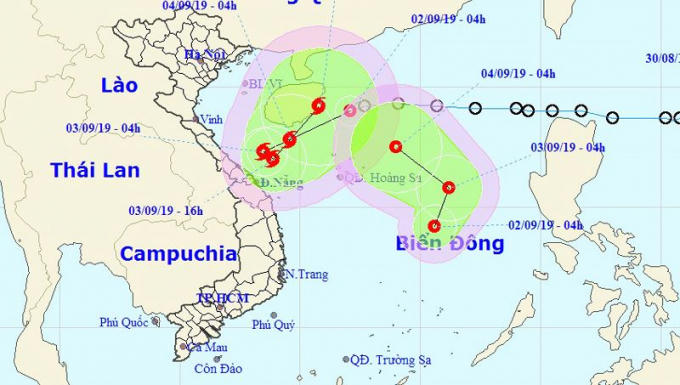 Dự báo trong 24 giờ tới, áp thấp nhiệt đới di chuyển theo hướng Tây Tây Nam mỗi giờ đi được khoảng 15-20km và có khả năng mạnh lên thành bão. Đến 4h ngày 3/9, vị trí tâm bão ở khoảng 17,3 độ Vĩ Bắc; 108,5 độ Kinh Đông, cách đất liền các tỉnh từ Quảng Trị - Quảng Ngãi khoảng 150km về phía Đông. Sức gió mạnh nhất vùng gần tâm bão mạnh cấp 8 (60-75km/giờ), giật cấp 10.