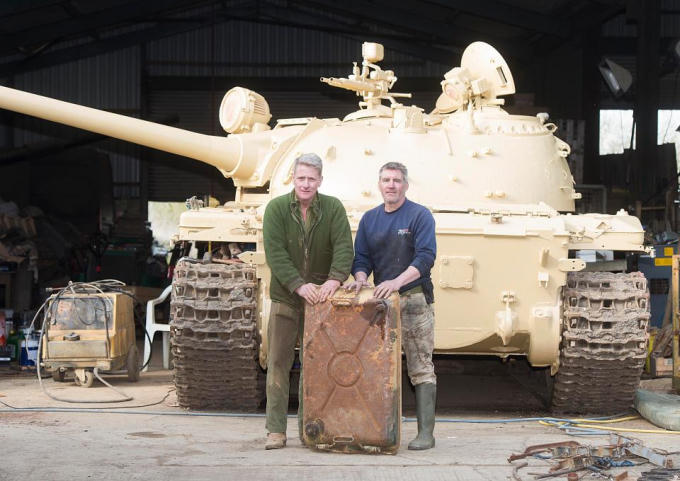 Anh Nick Mead và người bạn là thợ cơ khí Todd Chamberlain, 50 tuổi, mở thùng dầu bên trong xe tăng để kiểm tra đề phòng có đạn dược bên trong.