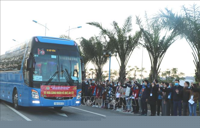 Sáng 10/2/2021, tại Khu công nghiệp Tràng Duệ, huyện An Dương và Khu công nghiệp VSIP Hải Phòng, Công đoàn Khu Kinh tế Hải Phòng tổ chức các chuyến xe đưa lao động tỉnh xa về quê đón Tết.