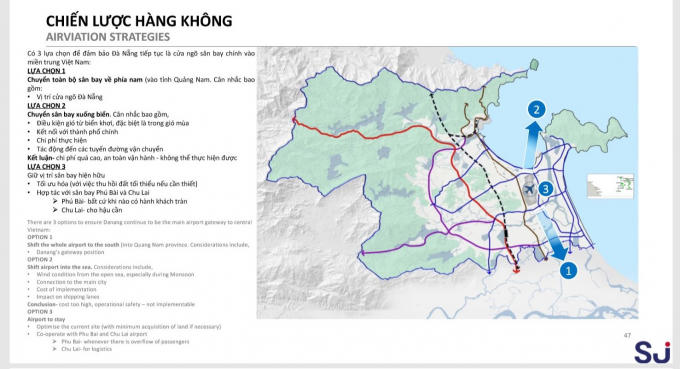 Chuyên gia tư vấn của đơn vịtư vấn Surbana Jurong (Singapore) có đề xuất giải pháp: đối với sân bay Đà Nẵng, nên lựa chọn phương án giữ nguyên hiện trạng và mở rộng sân bay nhằm tăng tải trọng hành khách trong năm, kết nối tốt với các sân bay lớn của cả nước.