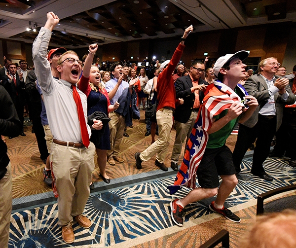 | Người ủng hộ Trump reo hò tại đại học Sydney in Australia. (Ảnh: Reuters) |