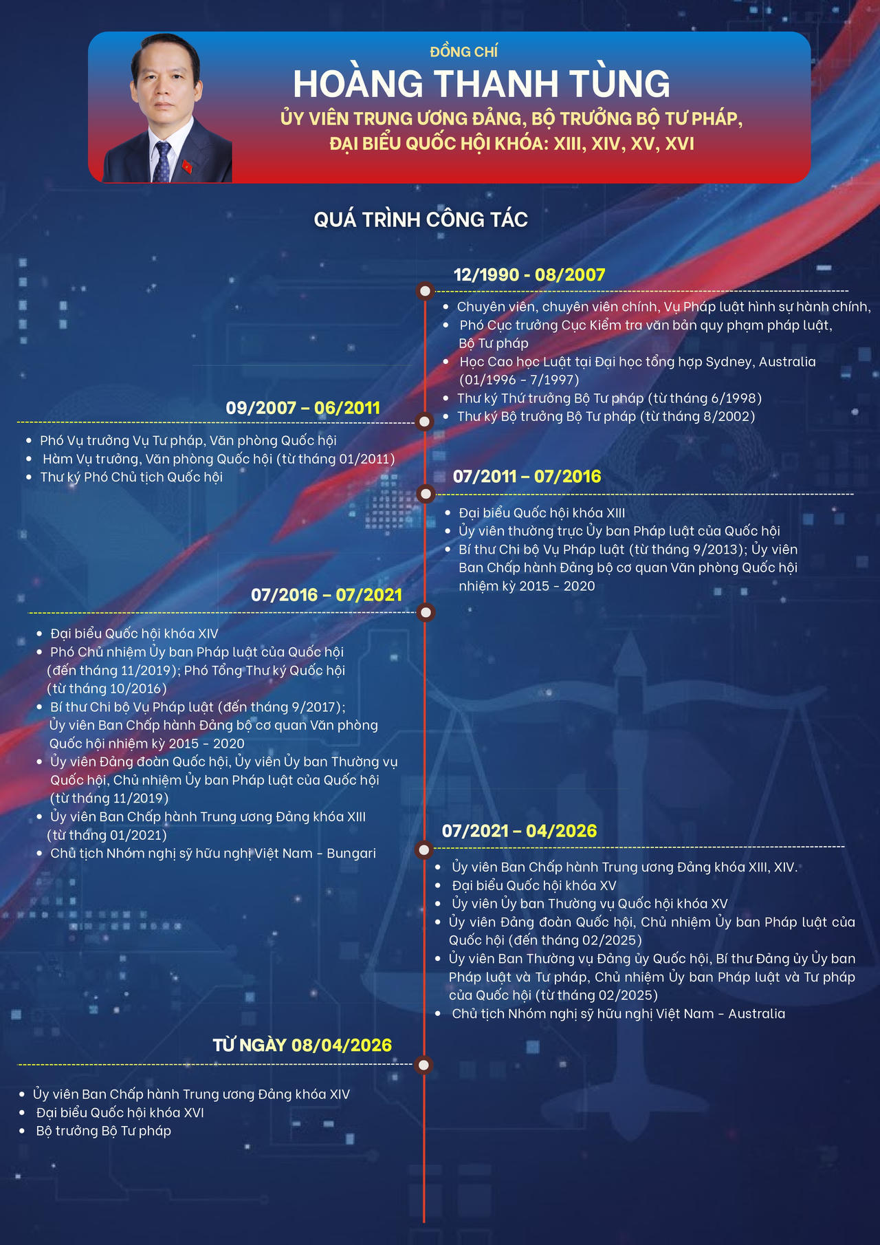 * 8/4/2026: Quốc hội phê chuẩn bổ nhiệm giữ chức Bộ trưởng Bộ Tư pháp.