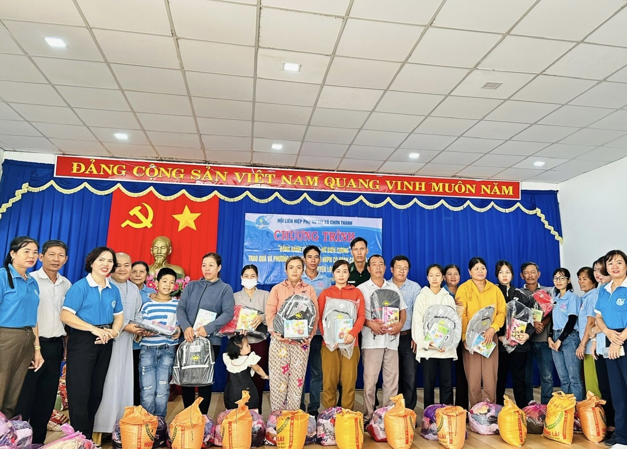 Bên cạnh đó, Hội LHPN thị xã Chơn Thành đã vận động chùa Đức Tạng cùng quý phật tử và các mạnh thường quân chung tay cùng các cơ sở hội trao tặng 150 phần quà và 300 con gà giống là phương tiện sinh kế cho các hộ gia đình phụ nữ có hoàn cảnh khó khăn của xã Lộc Thạnh. Tổng trị giá của các phần quà và gà giống khoảng 55 triệu đồng.