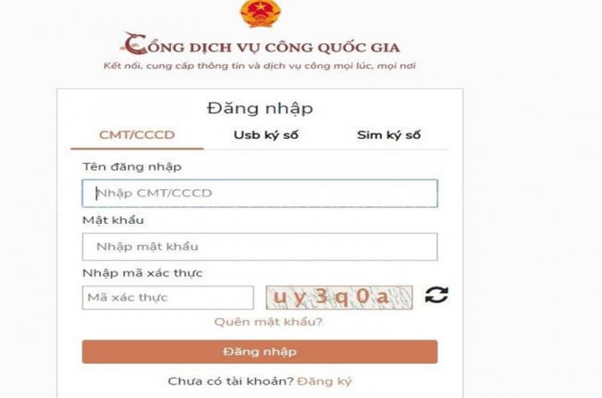Giao diện Cổng dịch vụ công quốc gia.