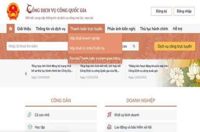 Để thực hiện việc thanh toán vi phạm giao thông, người dân cần đăng ký một tài khoản tại Cổng DVCQG. Việc nộp phạt và nhận lại giấy tờ xe thực hiện tại Cổng DVCQG bao gồm các bước:Bước 1: Người dân truy cập vào link dichvucong.gov.vnBước 2: Chọn thanh toán trực tuyến > Thanh toán vi phạm giao thông.Bước 3: Tra cứu hồ sơ