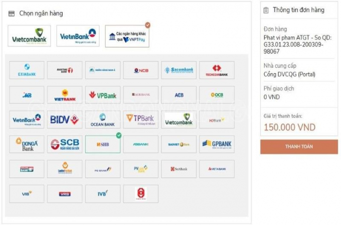 Người dân có thể lựa chọn lựa chọn ngân hàng hoặc trung gian thanh toán.