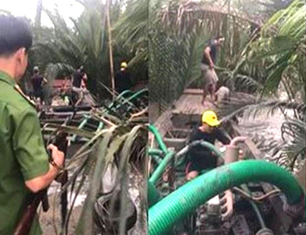 Bị phát hiện hút cát lậu, các đối tượng rút lù, nhấn chìm ghe bỏ trốn.