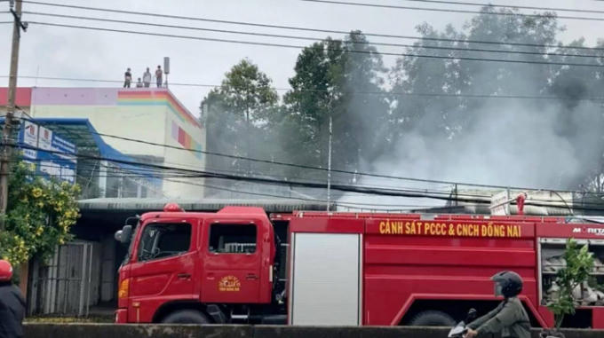 Nhận tin báo, lực lượng Cảnh sát PCCC tỉnh Đồng Nai huy động 3 xe chữa cháy cùng hàng chục chiến sĩ đến hiện trường dập lửa.