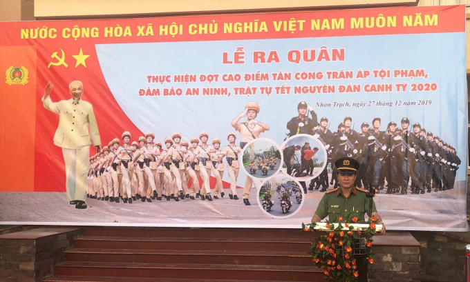 Ngày 27/12, thực hiện ý kiến chỉ đạo của lãnh đạo Công an tỉnh Đồng Nai nhằm tăng cường công tác bảo đảm an ninh, trật tự trên địa bàn, chuẩn bị tổ chức Đại hội Đảng các cấp tiến tới Đại hội lần thứ XIII của Đảng; bảo vệ tuyệt đối an toàn các mục tiêu quan trọng, các sự kiện chính trị, kinh tế, văn hóa, xã hội và các hoạt động vui Xuân trước, trong và sau Tết Nguyên đán Canh Tý năm 2020, công an huyện Nhơn Trạch (Đồng Nai) đã tổ chức lễ ra quân thực hiện đợt cao điểm tấn công trấn áp tội phạm, đảm bảo an ninh trật tự, an toàn xã hội,… tết nguyên đán Canh Tí 2020.