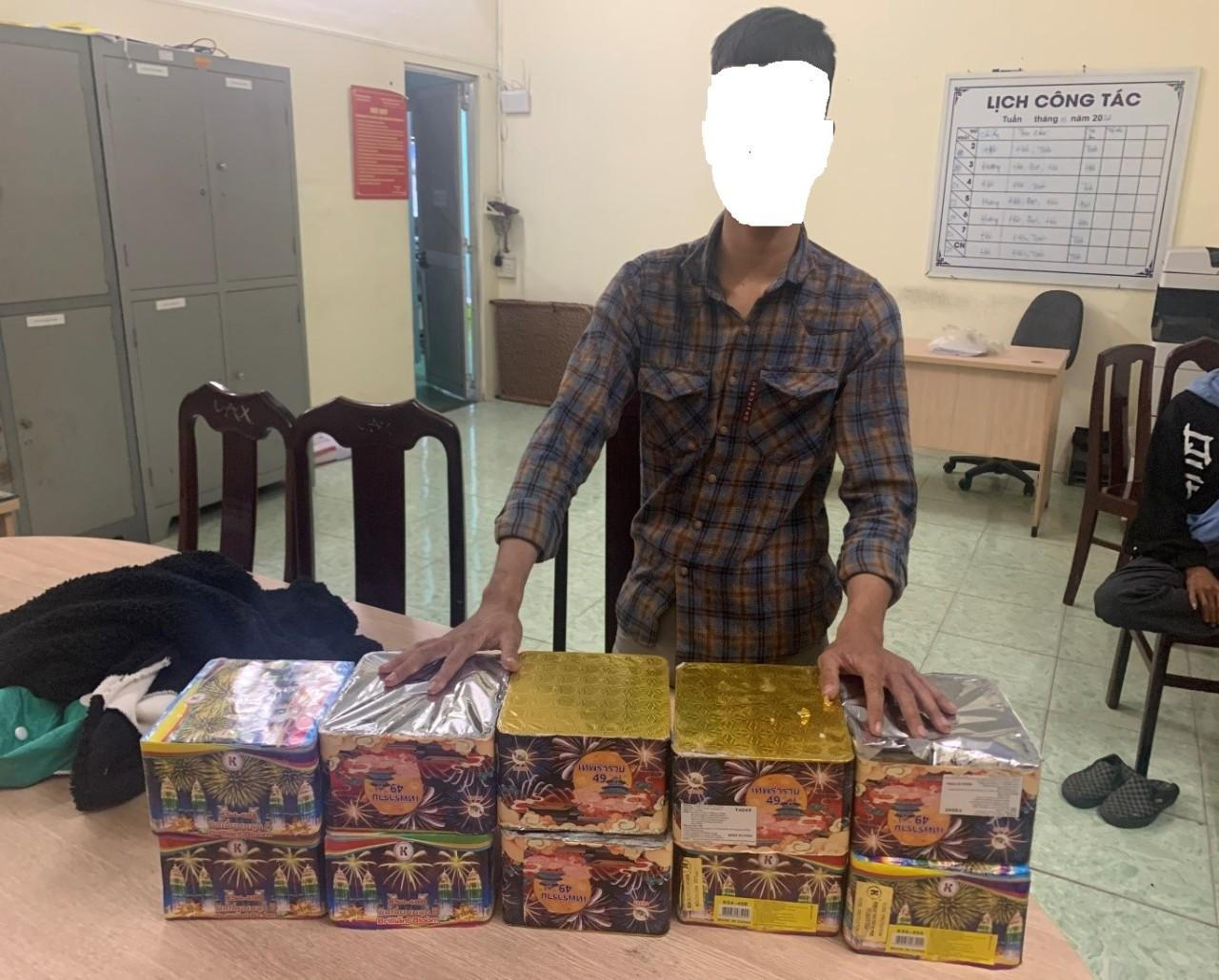 Tổ công tác tiến hành kiểm tra hành chính thì phát hiện và bắt giữ Dương Ngọc Lễ, SN:2004, HKTT: Ấp Nhân Hòa, Tây Hòa, Trảng Bom, Đồng Nai điều khiển xe mô tô BKS: 60L6-4417 chở 01 bao tải bên trong chữa 10 hộp pháo hoa nổ (loại 49 ống/hộp) không rõ nguồn gốc, xuất xứ.