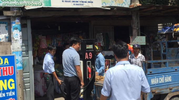 Lực lượng chức năng kiểm tra một “cây xăng cục gạch”.