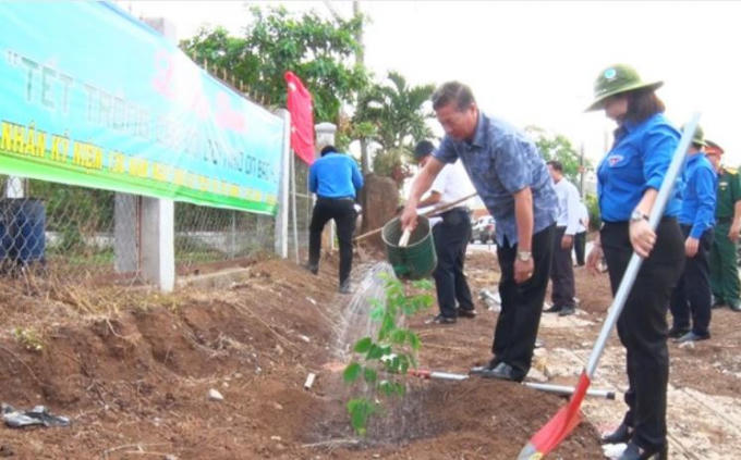 Các đoàn viên thanh niên tham gia Tết trồng cây đời đời nhớ ơn Bác Hồ. (ảnh: Đinh Tài)