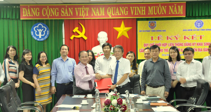 Ngày 5/6, Sở Tư pháp và Bảo hiểm xã hội (tỉnh Đồng Nai) đã tổ chức lễ ký kết Quy chế phối hợp thực hiện liên thông thủ tục hành chính đăng ký khai sinh, cấp thẻ bảo hiểm y tế cho trẻ em dưới 6 tuổi trên địa bàn tỉnh.