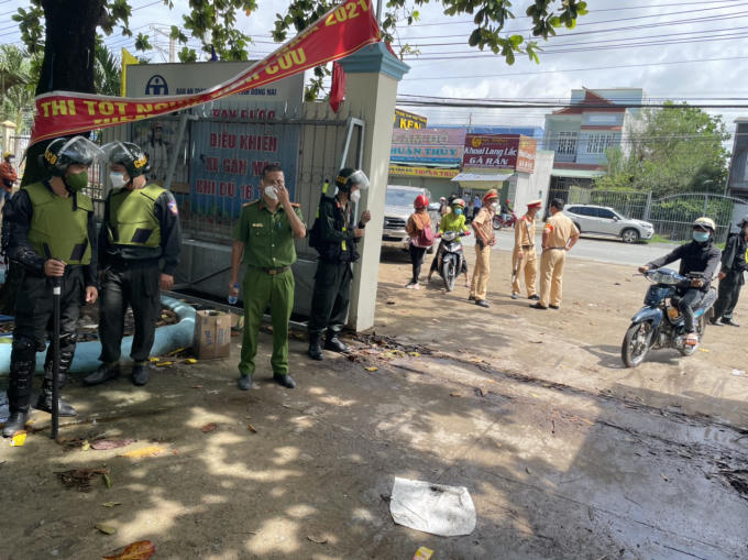 Lực lượng chức năng có mặt tại UBND xã Thạnh Phú, hỗ trợ công tác đưa công nhân về quê.