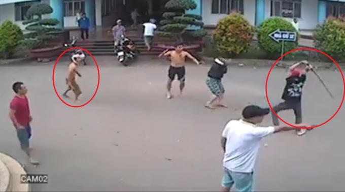 Clip: Hai nhóm thanh niên hỗn chiến trong khuôn viên bệnh viện. (Nguồn: Facebook)