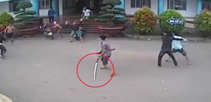 Bất chấp sự có mặt của lực lượng an ninh của bệnh viện, nhóm thanh niên trên hung hãn sử dụng nhiều loại vũ khí hạng nặng như dao, kiếm nhật, coắm, thậm chí là cả súng... lao tới tấn công lẫn nhau.