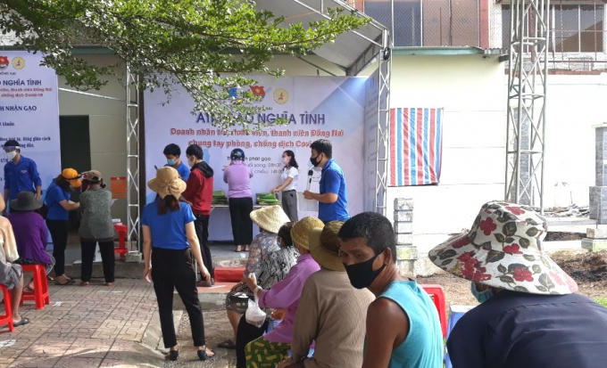 Điểm phát gạo tại Sân vận động TP Biên Hoà.