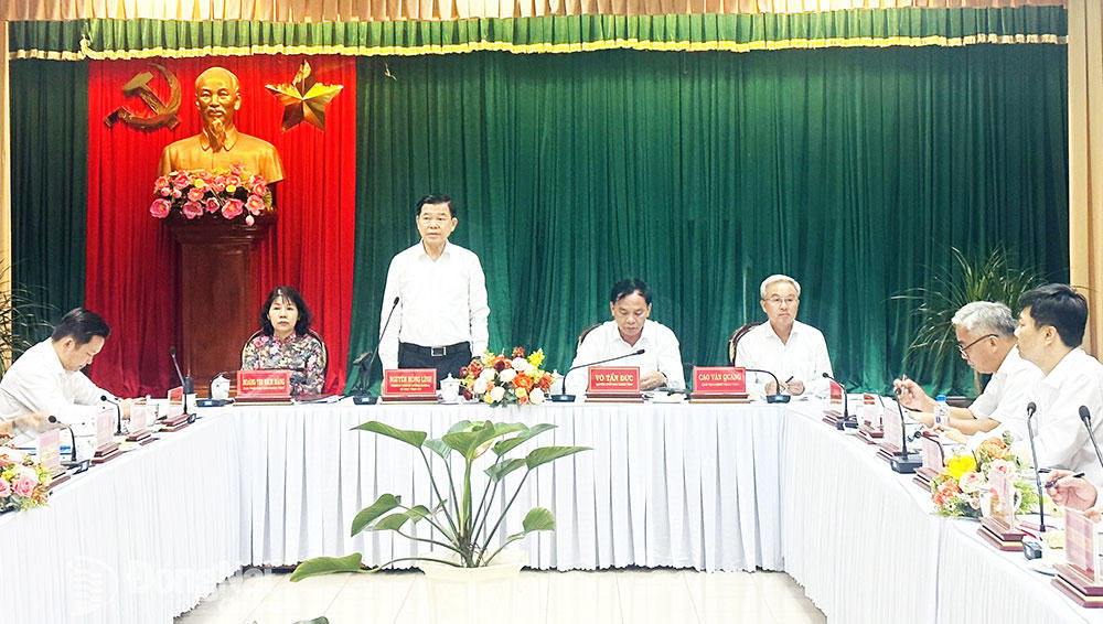 Ông Nguyễn Hồng Lĩnh - Ủy viên Trung ương Đảng, Bí thư Tỉnh ủy tỉnh Đồng Nai phát biểu tại cuộc họp. Ảnh: Báo Đồng Nai