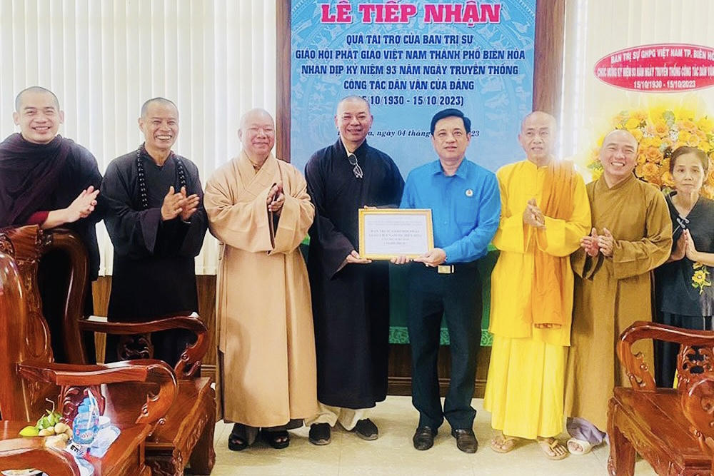 Liên quan đến việc vận động mạnh thường quân, sáng 4/10, Ban Dân vận Thành ủy Biên Hòa đã nhận 60 suất học bổng (tổng trị giá 60 triệu đồng) để tặng cho học sinh nghèo vượt khó của thành phố từ Thường trực Ban Trị sự Giáo hội Phật giáo Việt Nam TP Biên Hoà.