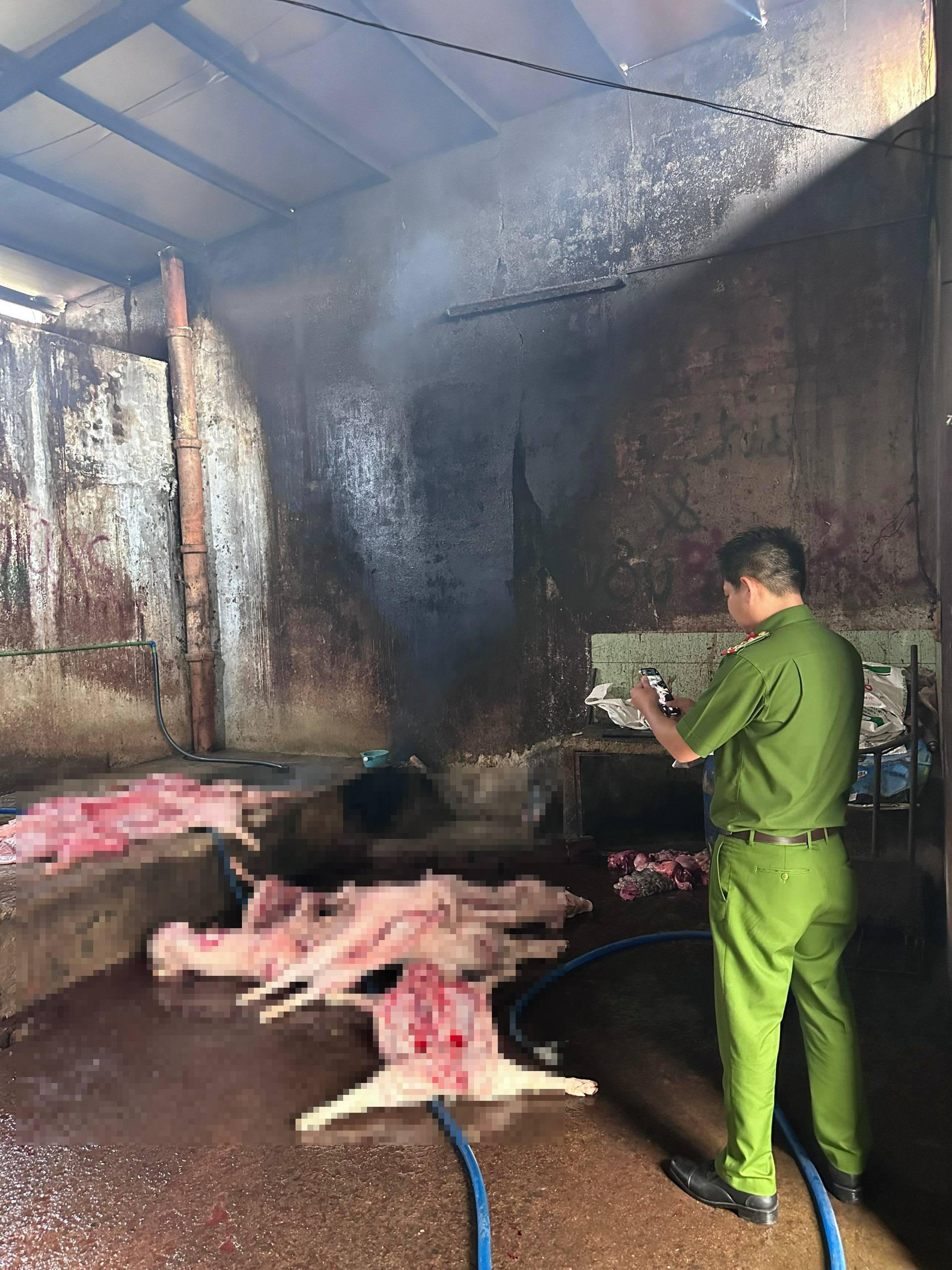 Đoàn liên ngành đã lập biên bản về hành vi mua bán động vật đã chết và giết mổ tại địa điểm chưa được các cơ quan chức năng cấp phép. Đồng thời, tiến hành thu mẫu heo chết để giám định.