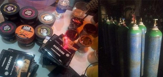 Kiểm tra bên trong quán bar Kosho, công an phát hiện và thu giữ một gói ma túy đá mà các đối tượng đã vứt trên sàn; 21 bình khí N2O (khí cười) trong đó có 19 bình đã sử dụng, 66 vỏ bóng cười, 30 hộp Shisa, 9 bao thuốc lá ngoại nhập 555, 151 chai rượu các loại.