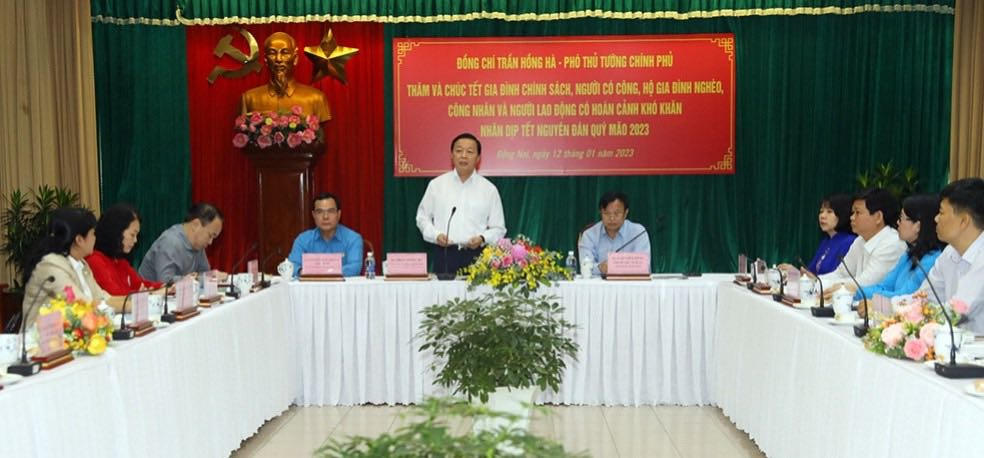 Phó Thủ tướng Trần Hồng Hà cũng cho biết, Đồng Nai là tỉnh đi đầu phát triển công nghiệp, có trên 700.000 công nhân lao động đang làm việc. Do đó, Phó Thủ tướng Trần Hồng Hà đề nghị tỉnh Đồng Nai tập trung chăm lo người lao động đón Xuân Quý Mão 2023 ấm áp, đầy đủ.