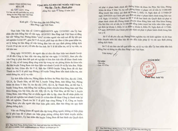 Sau khi Báo Pháp luật Việt Nam có bài phản ánh “Đồng Nai: Phòng khám “nhồi” cả trăm người vào một nơi để lấy kết quả xét nghiệm COVID-19” với nội dung nhiều phòng khám tại huyện Trảng Bom không thực hiện nghiêm quy định phòng chống dịch, tạo nguy cơ mất an toàn cho người dân và xã hội; UBND tỉnh Đồng Nai đã có văn bản yêu cầu Sở Y tế kiểm tra, xử lý vụ việc.