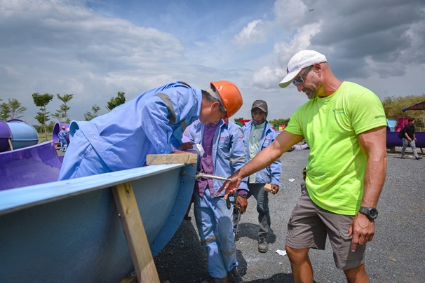 Các kỹ sư và công nhân đã và đang nỗ lực đẩy nhanh tiến độ đầu tư thi công Vịnh Sóng Thần để kịp ra mắt vào cuối năm 2019.
